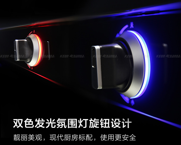 集成灶十大品牌科恩智能炫彩系列集成灶D620采用非凡設(shè)計(jì),五合一全能配置,結(jié)合造就簡(jiǎn)約流暢的現(xiàn)代風(fēng)格,與整體櫥柜搭配彰顯氣質(zhì),體現(xiàn)尊貴華麗風(fēng)范。機(jī)頭采用藍(lán)色氛圍燈,雙色發(fā)光氛圍燈灶具旋鈕設(shè)計(jì),整機(jī)不僅顯得靚麗美觀,為廚房增添光彩,灶具旋鈕雙色設(shè)計(jì)更能保證集成灶的使用安全。