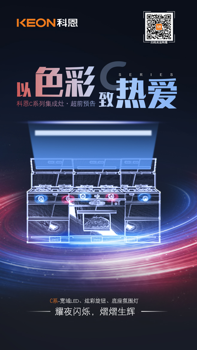 在這個世界上最美好的地方除了詩和遠方,還有家里的廚房,TA承載了我們對美好幸福生活的向往,華燈初上,步入廚房,開啟旋鈕,剎那間,耀夜閃爍,氤氤燈下,一起為愛洗手做羹湯...這才是生活最美好的模樣!愛要永葆新鮮,更要擁有超多儀式感,科恩C系集成灶,重新定義廚房美學震撼,構筑視覺與觸覺的全新想象!