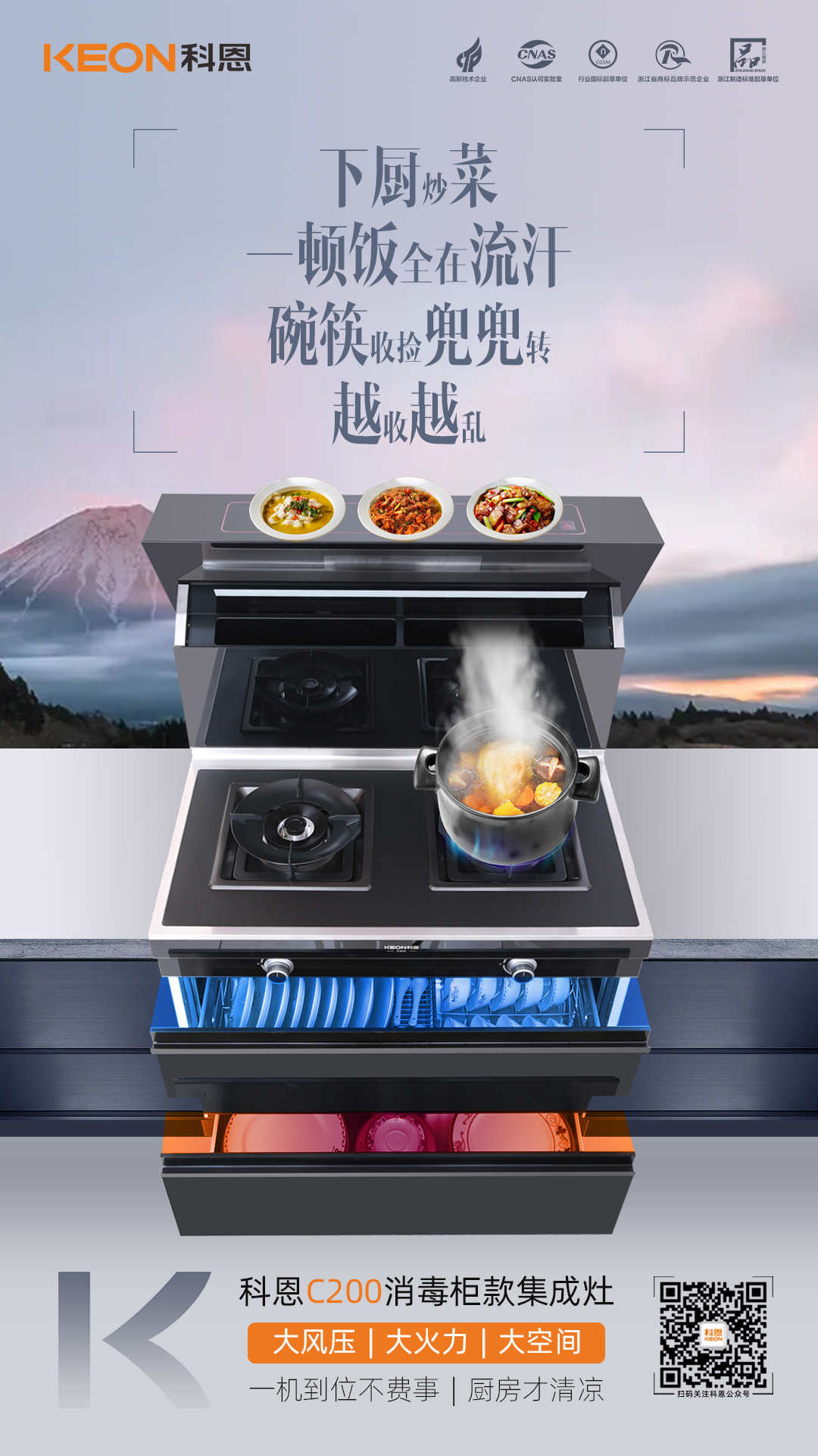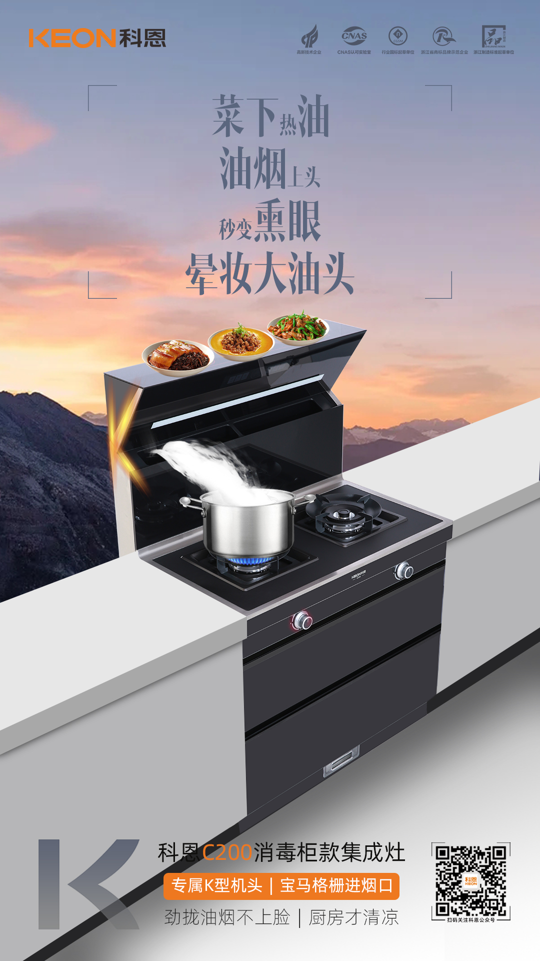 科恩C200消毒柜款集成灶,夏日廚房必備寶藏好物,實用不踩雷,分分鐘讓你愛上下廚!