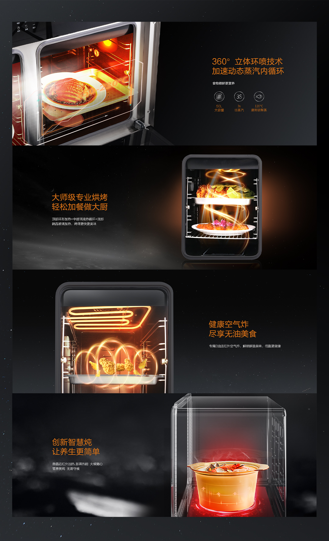6大蒸煮模式+6大燒烤模式,內置菜譜,一鍵直達,美味可以更簡單。