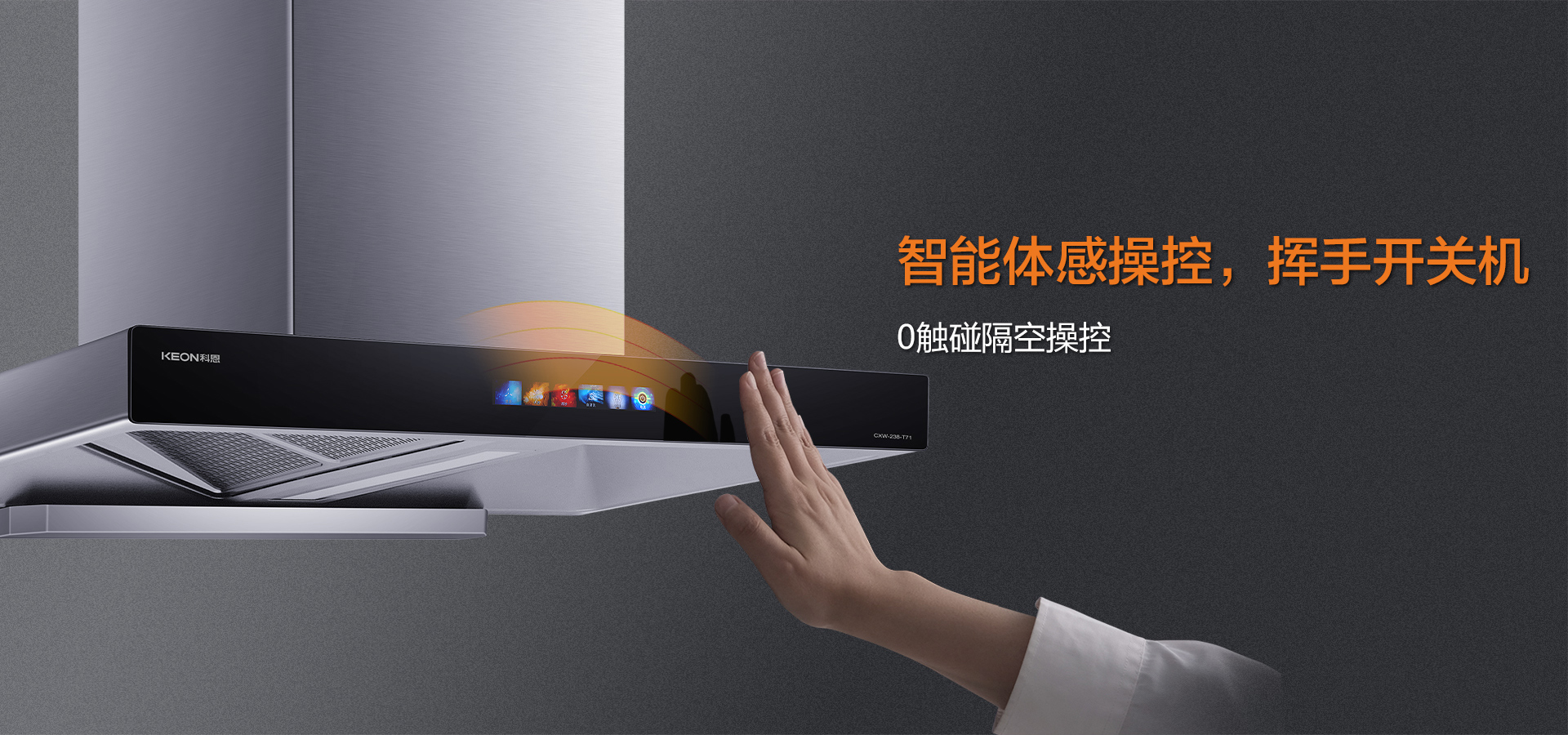 T71設置0接觸體感設置,揮手即可開關機,不僅讓廚房生活更具科技感,且避免了手上污漬黏在機身上難以打理的煩惱。