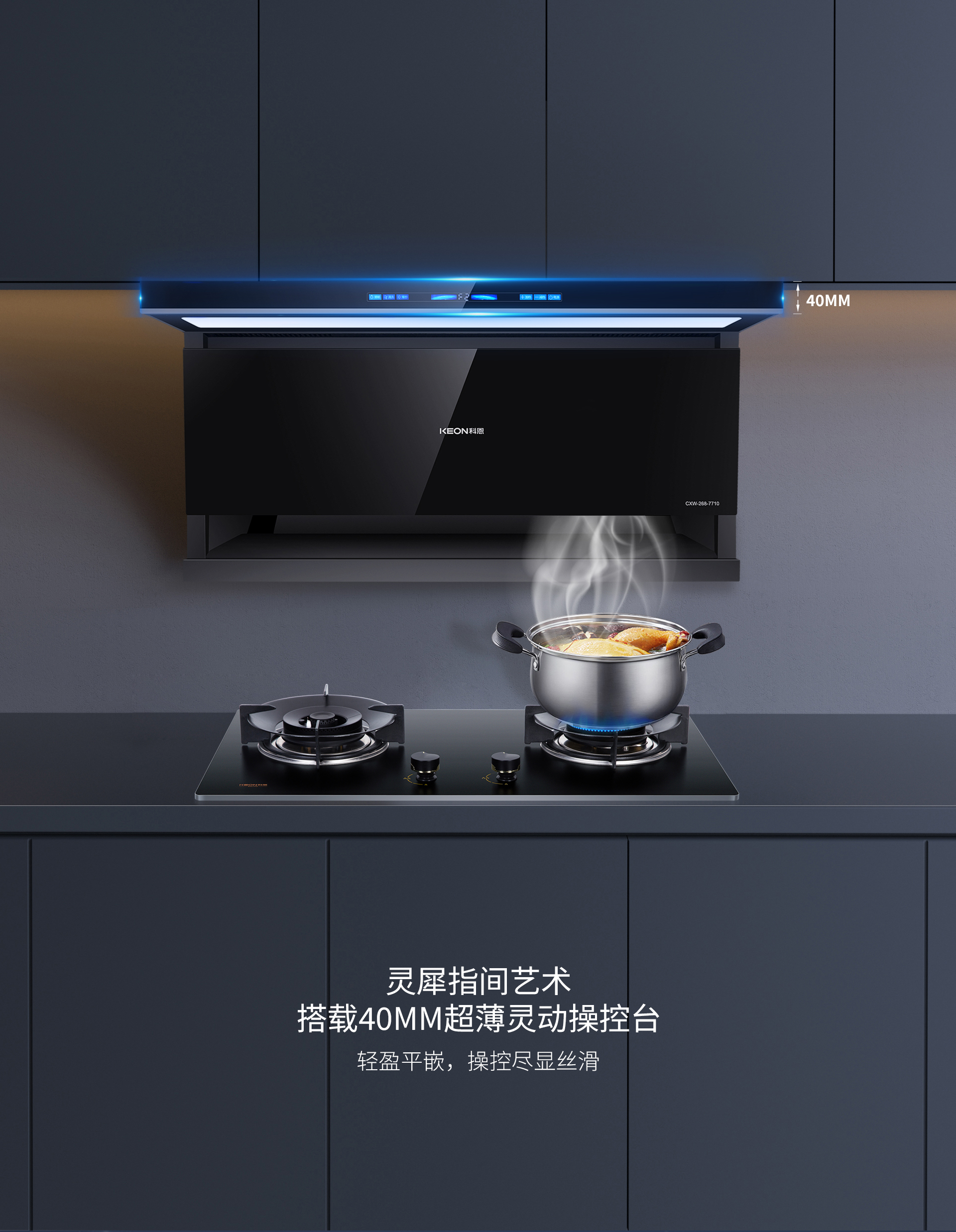 科恩7710智能聯(lián)動(dòng)煙機(jī),它所代表的不僅僅是技術(shù)層面的高度突破,更是對美好廚房體驗(yàn)矢志不渝的追求。其獨(dú)特的設(shè)計(jì)靈感,仿若來自浩瀚銀河星際。那深邃藍(lán)光跨弧意境的觸摸屏設(shè)計(jì),為烹飪增添了無限想象空間,讓每一次操作都如同在星際間穿梭,充滿了科技與藝術(shù)的交融之美。
