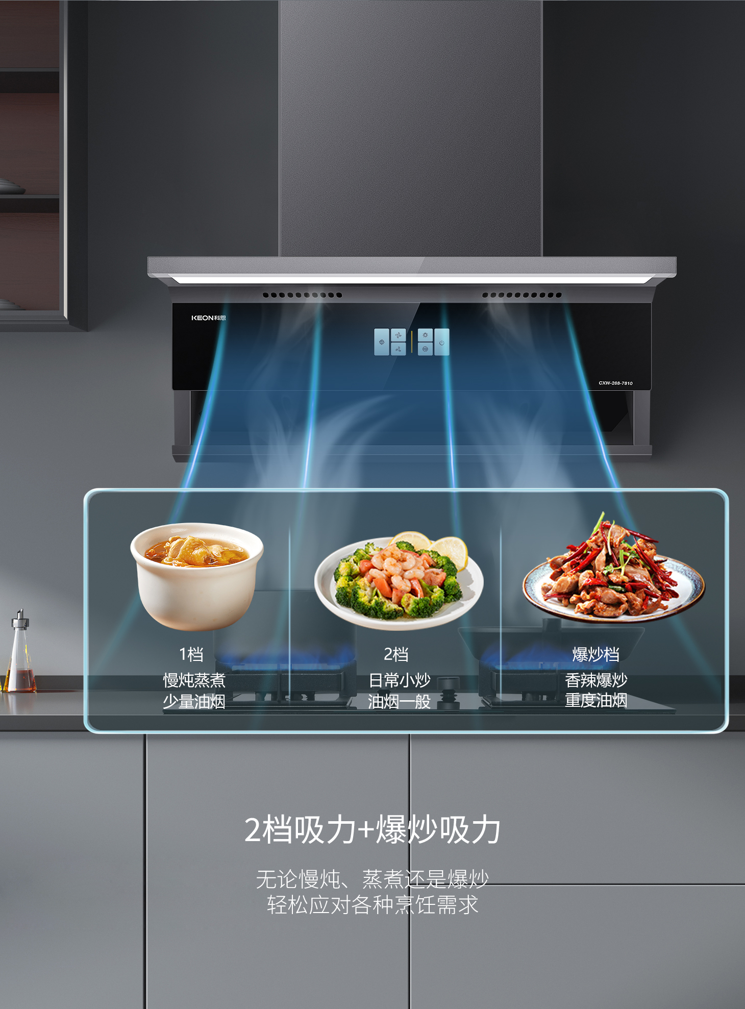 科恩旗艦款大吸力油煙機(jī)7810,兩檔吸力+爆炒模式,輕松下廚零負(fù)擔(dān)。智能自清洗去除頑固油污,延時(shí)凈煙自動清除余味,守護(hù)廚房每一寸清新。攜手科恩,煥新生活。科恩7810凈煙有魄力,廚房方寸皆自由。這個(gè)舊廚煥新季,換一臺會思考的煙機(jī),給廚房一次溫柔革命!