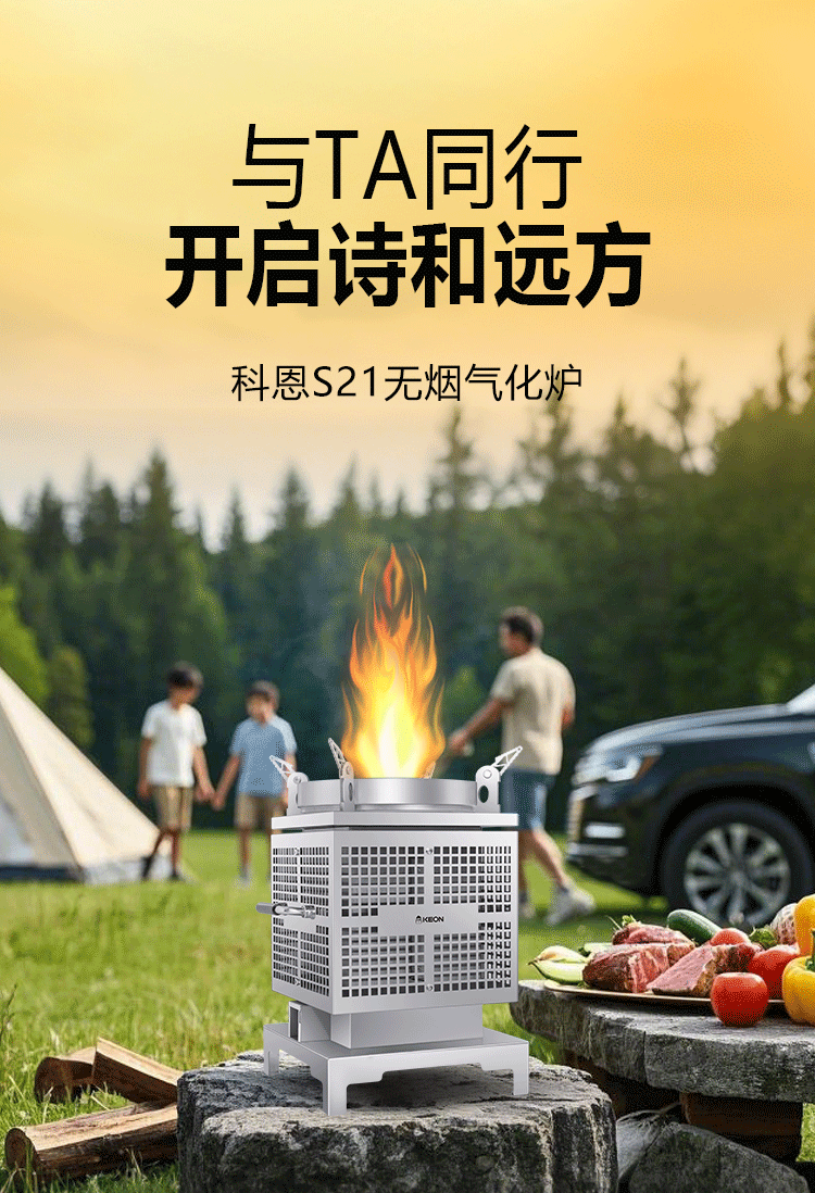 科恩無(wú)煙氣化爐S21,無(wú)煙環(huán)保,節(jié)能高效。以科技之名,守護(hù)山野呼吸的純凈,留存人間煙火的溫度。來(lái)一場(chǎng)說(shuō)走就走的露營(yíng),享受春日暖陽(yáng)和自然野趣。科恩,讓?xiě)敉馀腼兏鼰o(wú)憂,無(wú)煙氣化爐S21新升級(jí),搭配12500RPM高轉(zhuǎn)速風(fēng)機(jī),無(wú)極調(diào)速,控火隨心。一切物體皆可燃,枯枝落葉化身燃料!