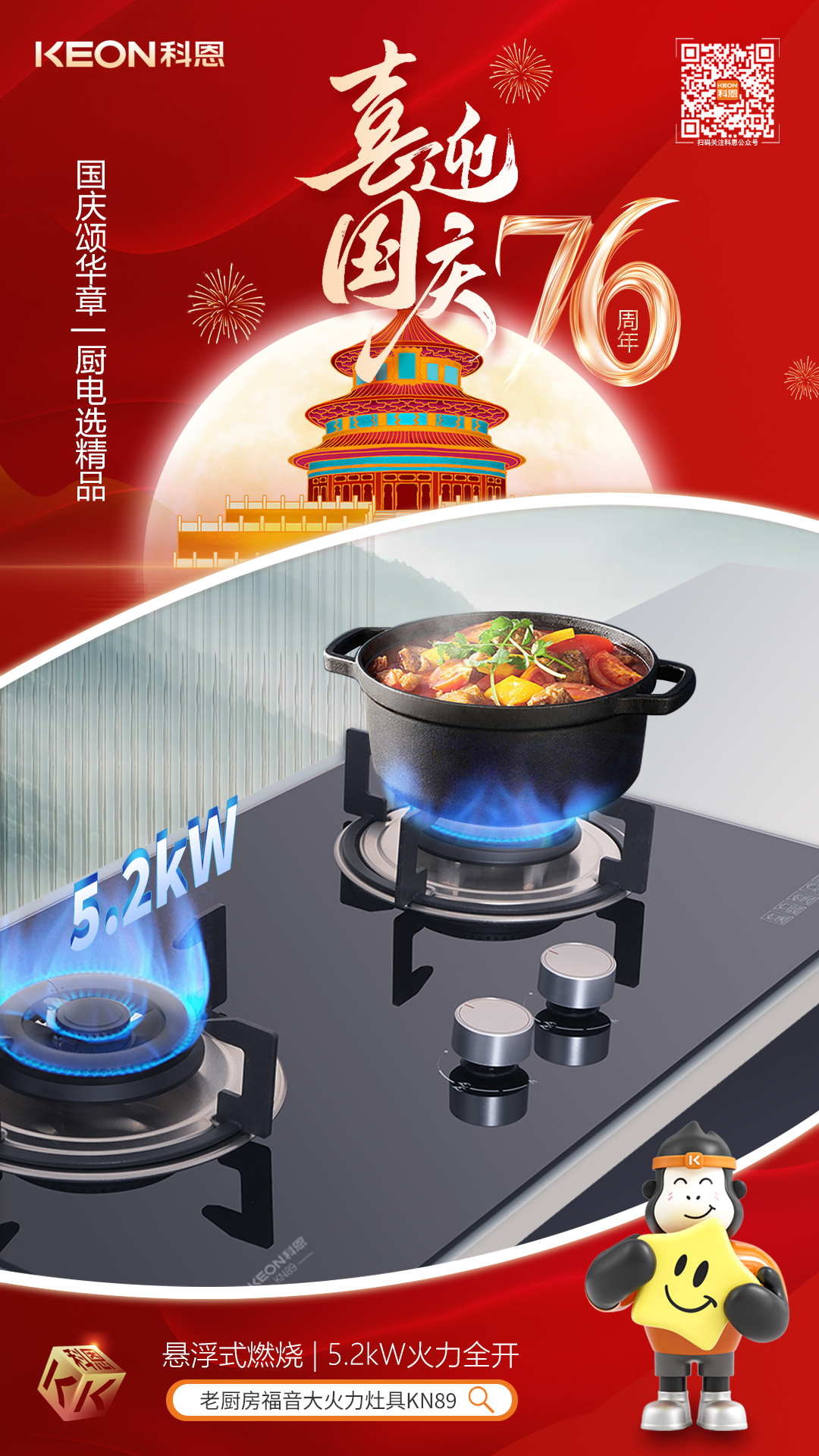 盛世華誕,家國同慶??贫鲾y品質廚電,以科技賦能團圓時刻,重塑廚房呼吸美學。讓爆炒油煙遁于無形,讓家宴烹飪既高效又安心,守護每個家庭的假日煙火溫情。