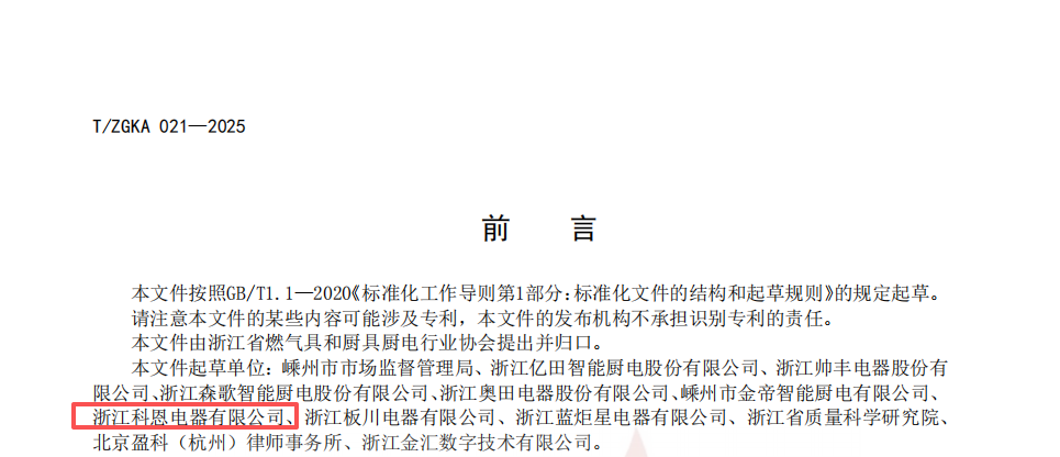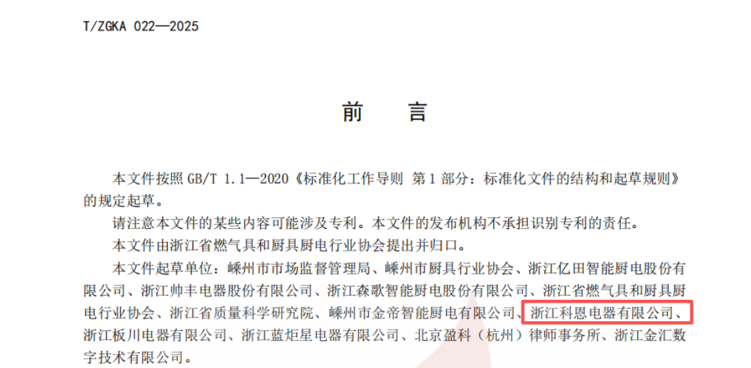 此次榮膺團標起草單位,是科恩十余載載譽前行的又一高光時刻。在榮譽殿堂中,高新技術企業認定與CNAS認可實驗室彰顯其科研實力;行業標準起草單位、集成灶團體標準起草單位、集成水槽標準參編單位等頭銜,“廚電行業十大品牌”“守合同重信用企業”等榮譽,印證其在標準制定領域的持續深耕體現市場與社會的雙重認可。同時,作為中國五金協會、浙江省燃氣具和廚具廚電行業協會理事單位,科恩始終積極參與行業治理,用實際行動踐行領軍企業的責任擔當。