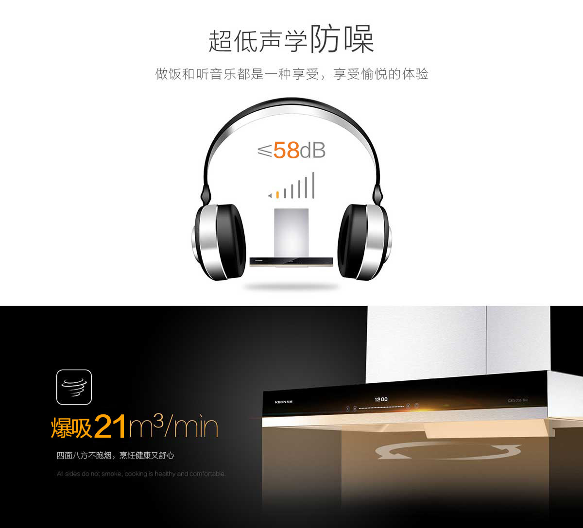 立體環(huán)吸360°,四面八方不跑煙,烹飪健康又舒心。