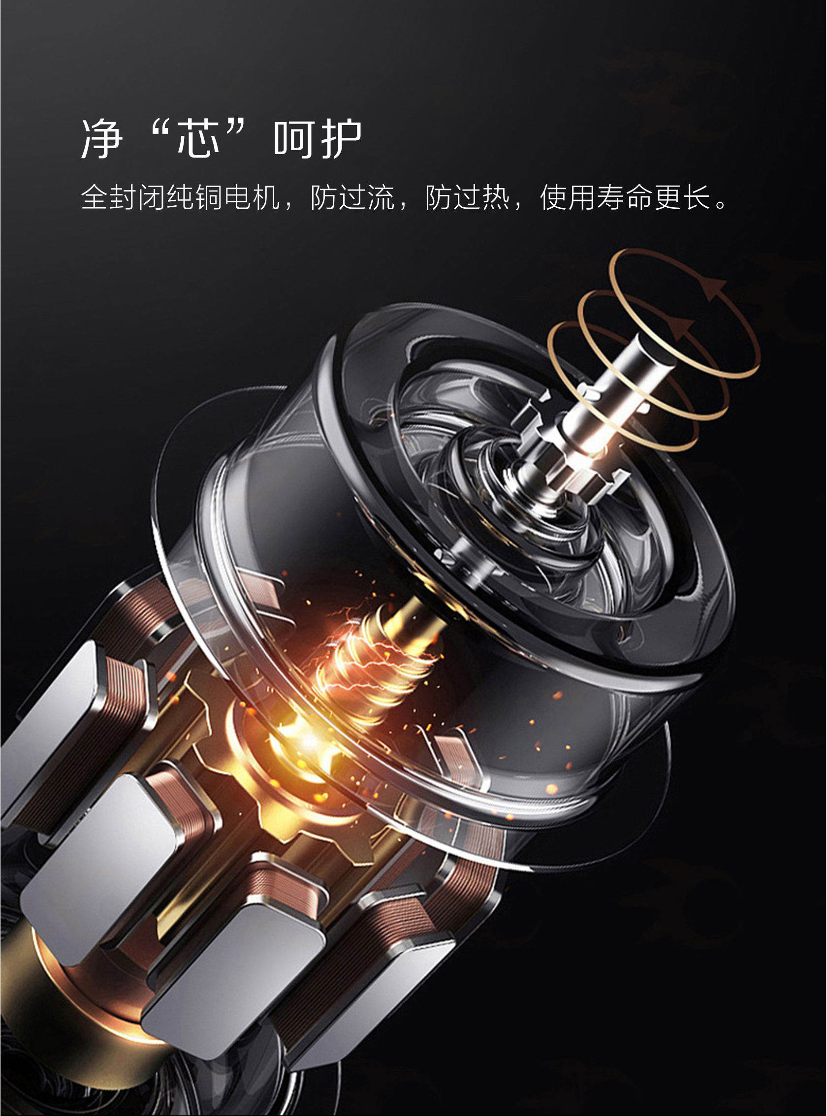 - 凈“芯”呵護(hù),全封閉純銅電機(jī),防過流,防過熱,使用壽命更長(zhǎng)。