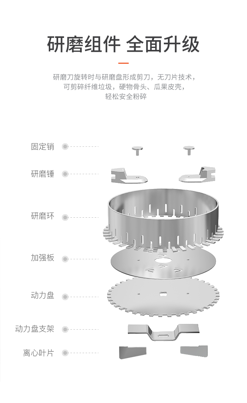 600W大功率變頻永磁電機,8級精密研磨確保碎骨成渣渣。