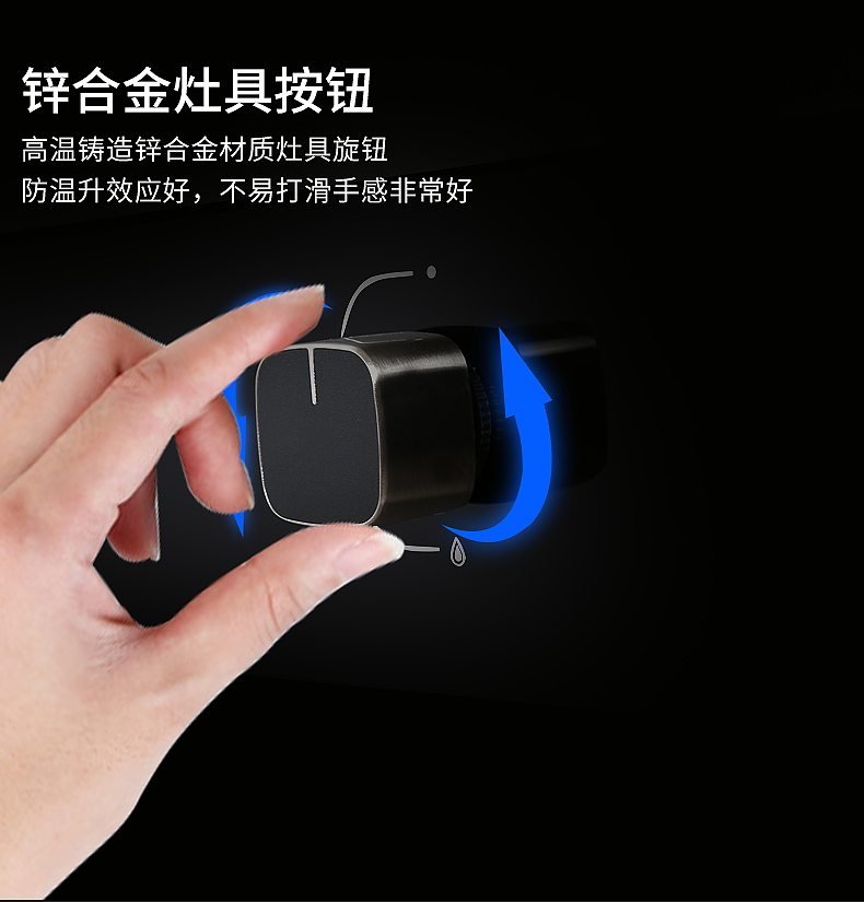 - 鋅合金精鑄材質灶具旋鈕,防溫升效應好,不易打滑手感極佳。