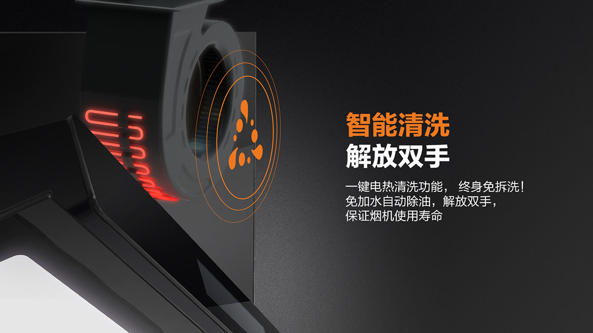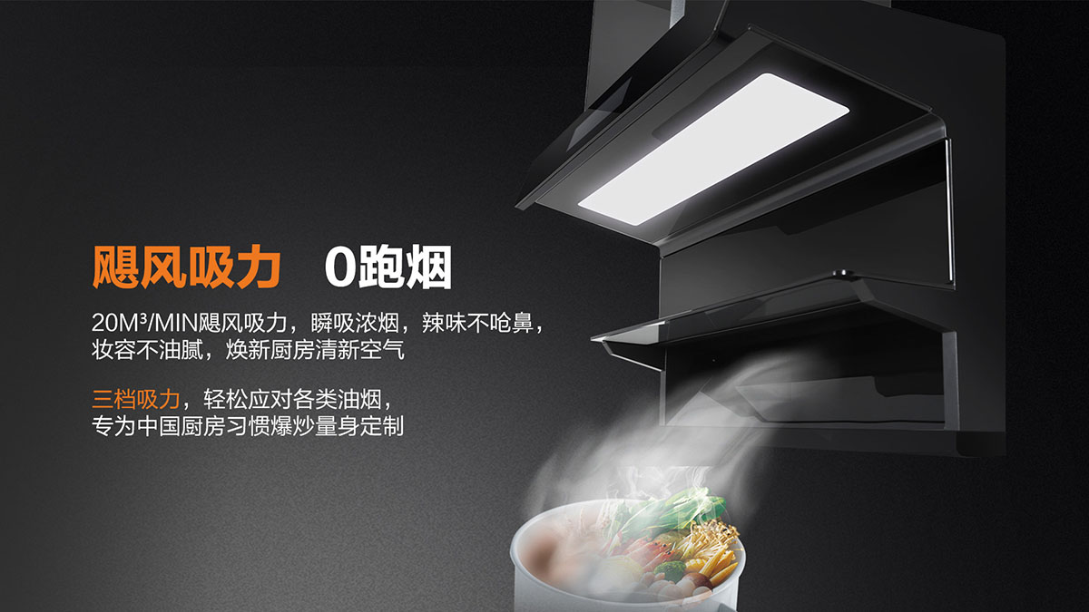 獨(dú)特黃金吸煙角,二次冷凝板內(nèi)傾設(shè)計(jì),油煙不過臉