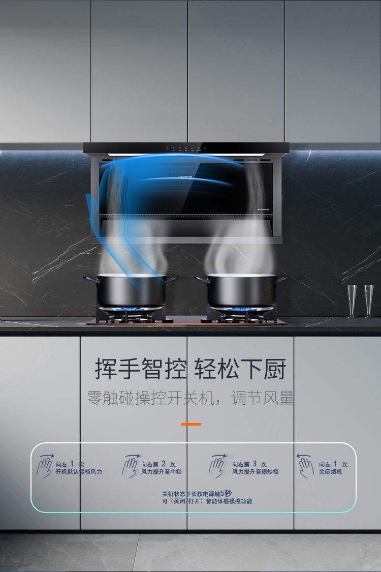 揮手智控,零觸碰操控開關機,調節風量。