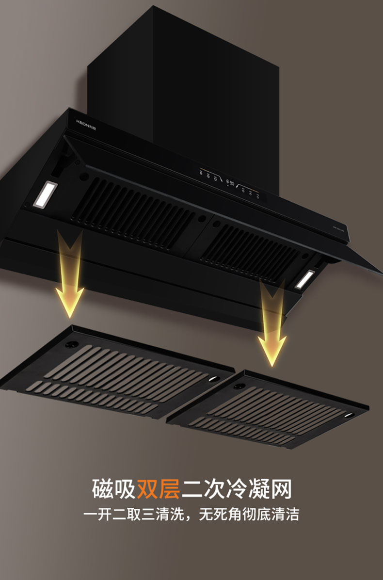 - 磁吸雙層二次冷凝網(wǎng),一開二取三清洗,無死角徹底清潔